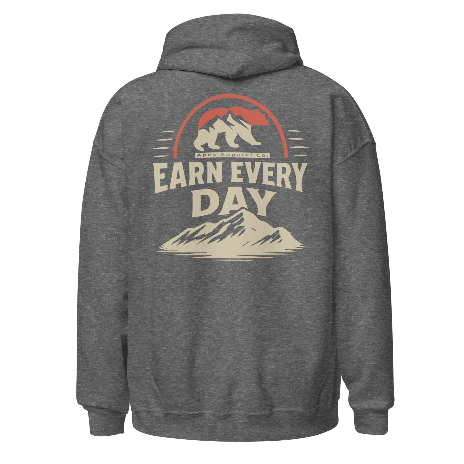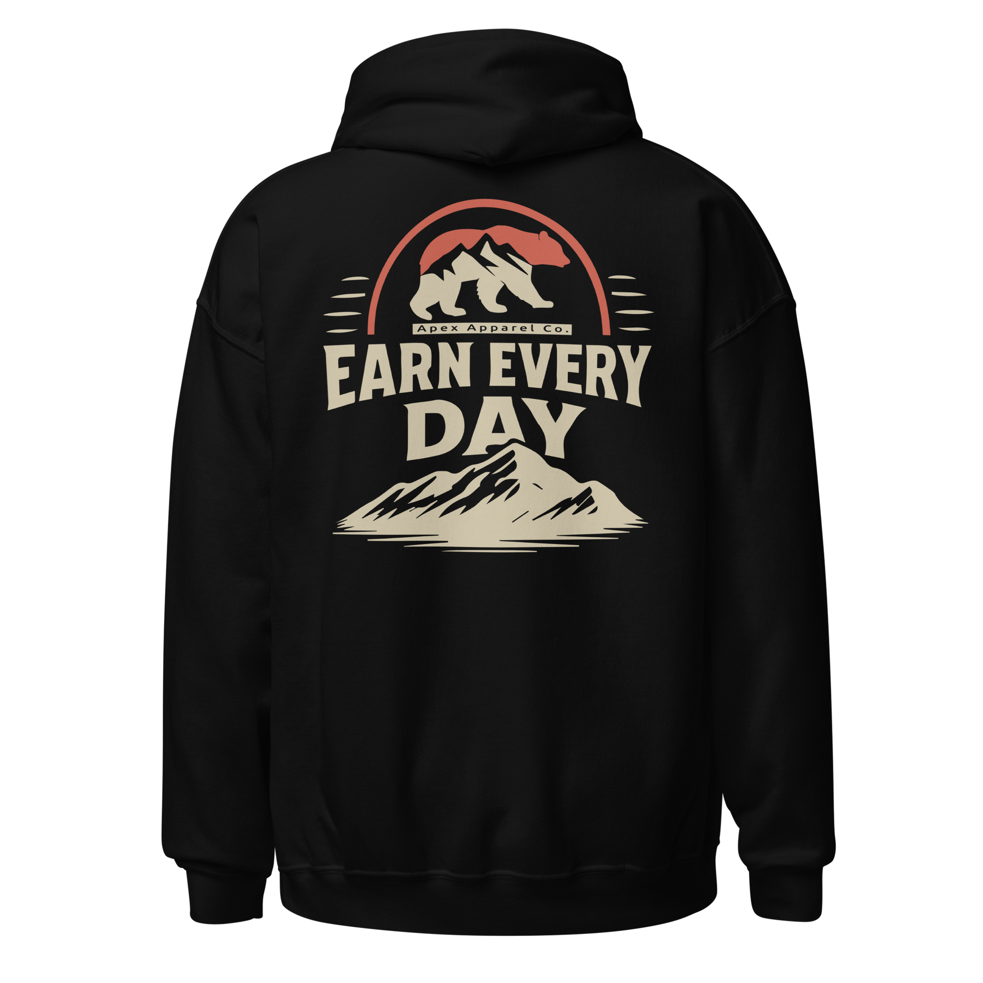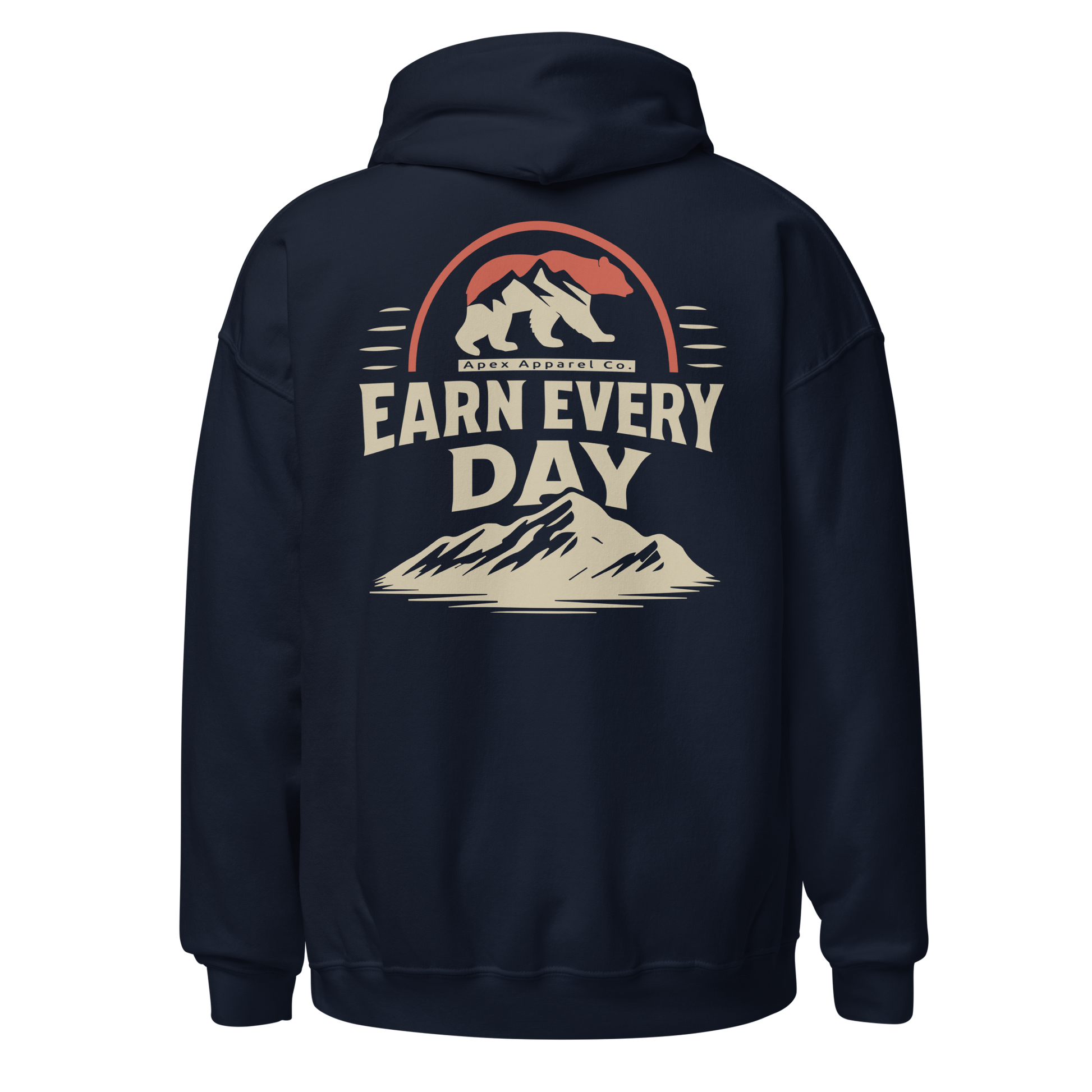 The Earn Every Day Tee is not just a shirt—it's a mentality stitched into the fabric. Featuring the Apex Bear on a relentless climb and a mountain forged under pressure, this design is a battle cry for those who wake up to win, not whine.