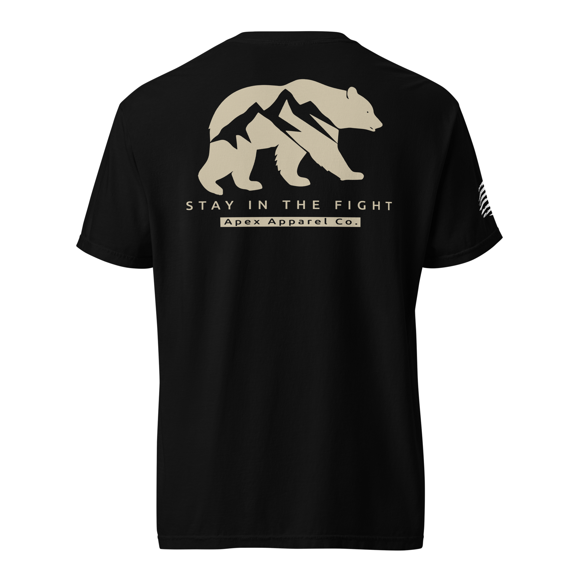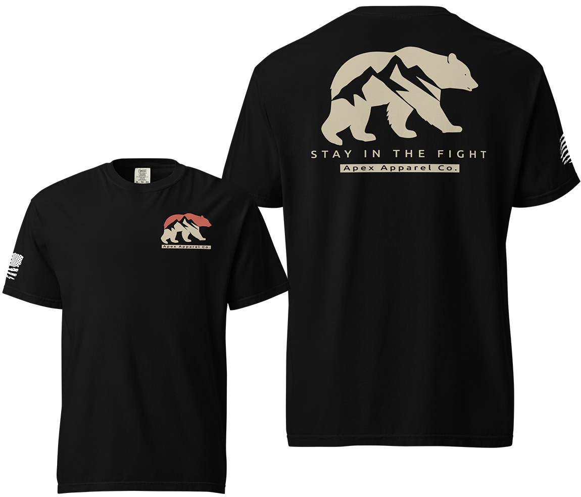 Featuring our new bear logo with the Apex Mountain embedded within, this design symbolizes strength and perseverance. The bold message "Stay In The Fight" serves as a constant reminder to keep pushing forward, no matter the challenges you face.