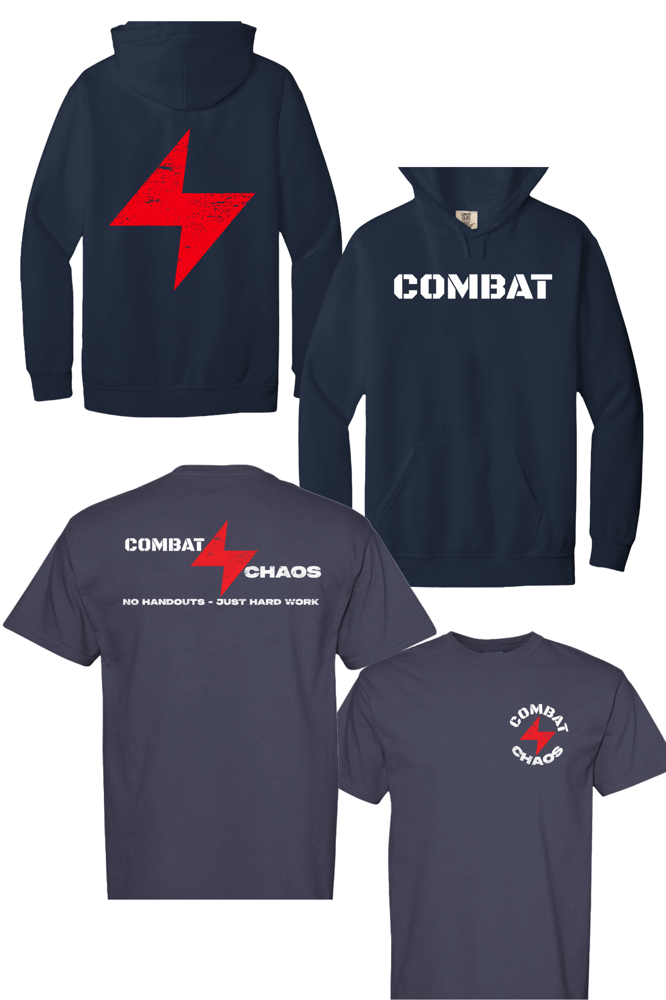 1x The Standard Hoodie: Comfort Colors 1567 Heavyweight (9.5oz). Featuring the "COMBAT" front stencil and the massive Red Breaker Bolt on the back. It’s your outer layer for the cold mornings and the long nights.